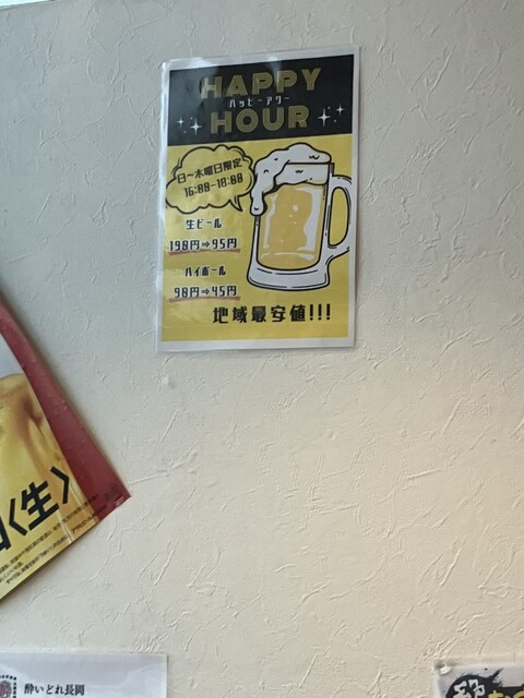 今日は金曜日なのでハッピーアワーの生ビール95円、ハイボール45円は対象外です。