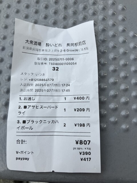 食べログのポイントを使って417円のお支払いでした。