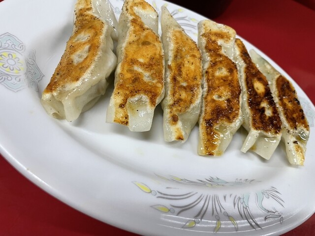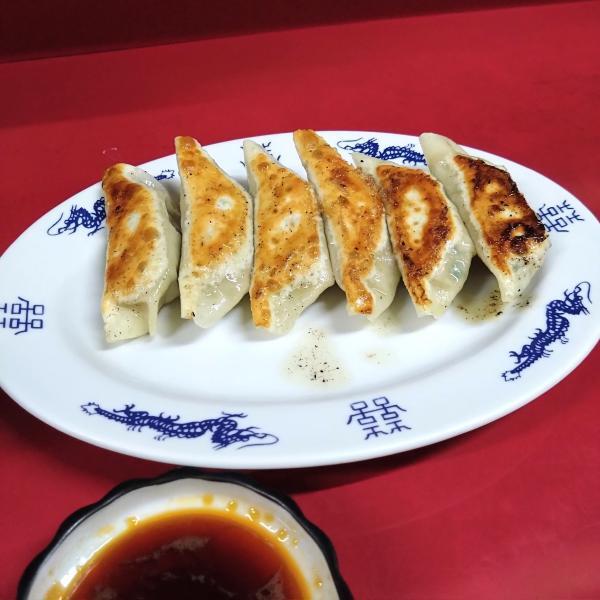 餃子をいただきました。中の餡はかなり滑らかにとことん練られた食感です。皮はしっかり焼かれています。しっかり皮としっとり餡です。提供もめっちゃ早いお店です。