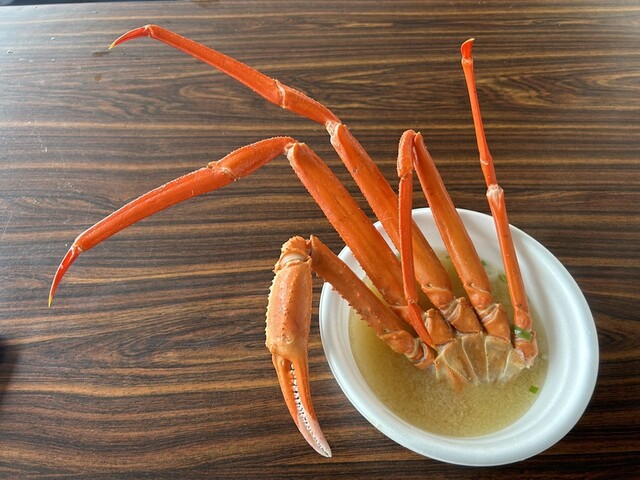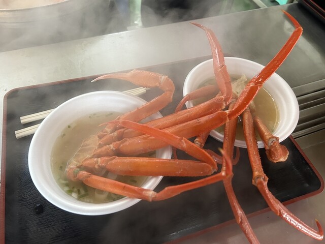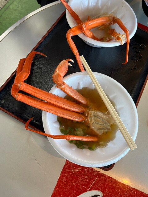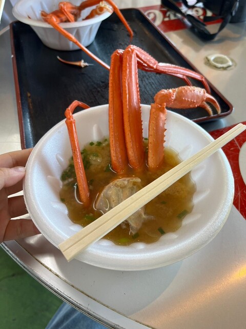 500円のかに汁。大きなかに半身、足が4本とハサミ部分が入ってる。 ハサミ部分、かにの足が太く、こんなに大きなかにの半身が入ったかに汁初めてたべました。 めちゃくちゃおいし... 詳細を見る