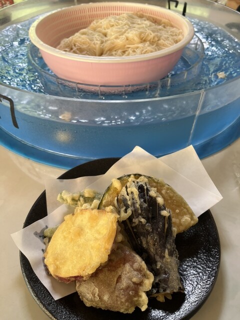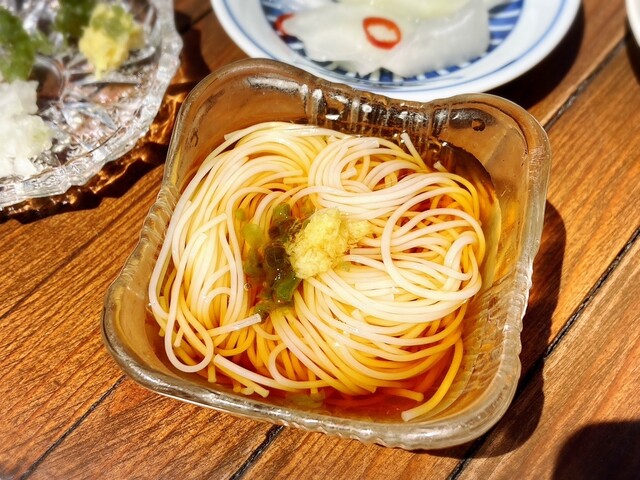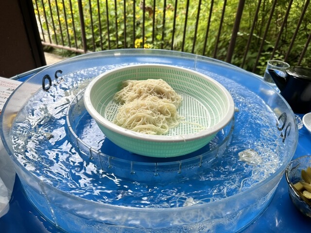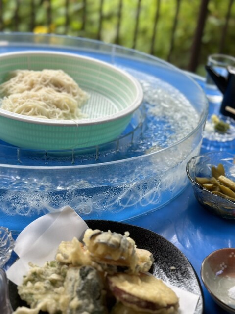 夏には食べたくなる流しそうめん2年ぶりに伺いました。インバウンドもですが映えスポットでもあるのか大人気です。水は冷たくそうめんはつやつやです。そうめんを流す人はおらず自分で行うので大人数がやはり楽しいと思います