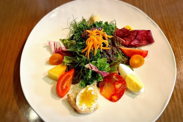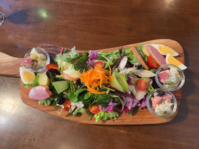 この日もシェアランチ ドリンクでスパークリングワインやノンアルスパークリングなど選べるのも得点高いです☆ 最初の前菜盛り合わせは毎回の定番ですが、ボードにたっぷりのサラ... 詳細を見る