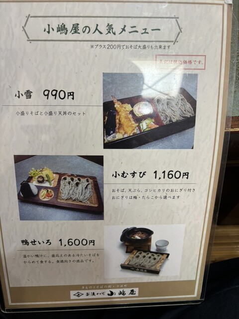 へぎそば2,080、天ぷら1,060