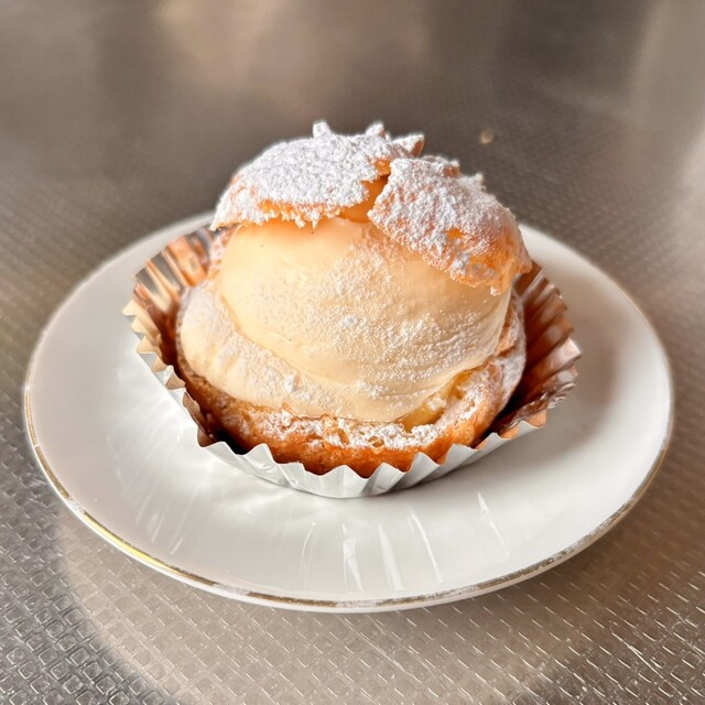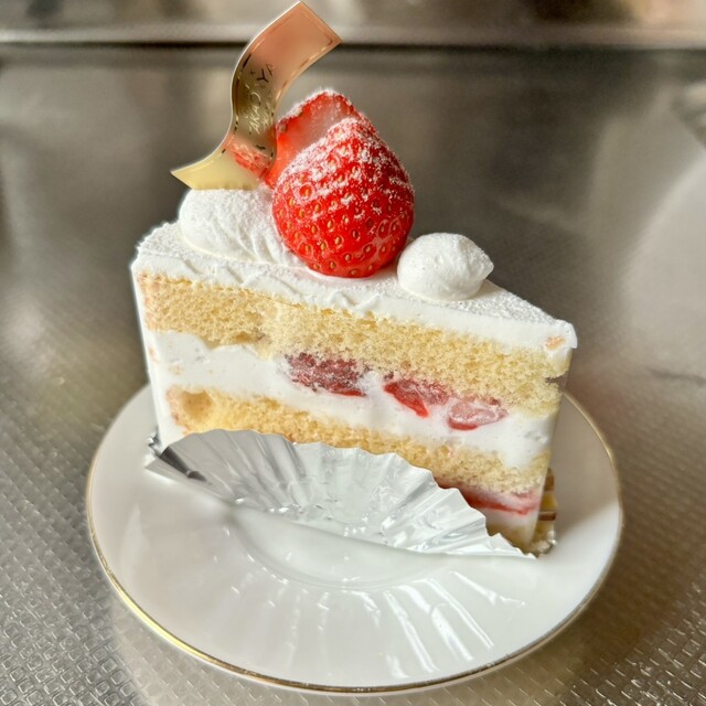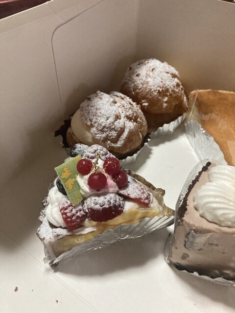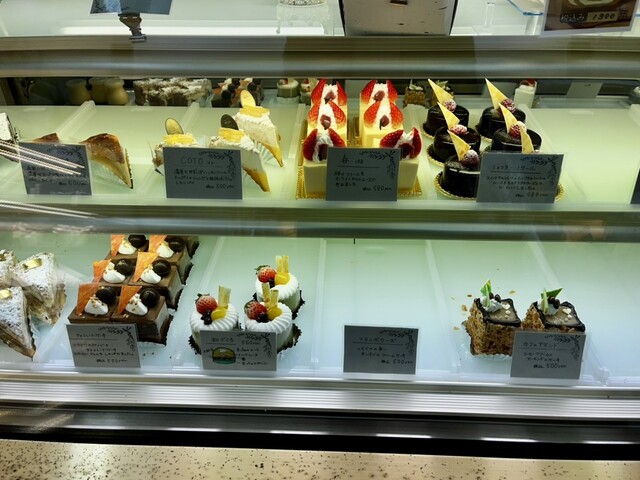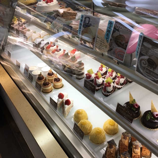 国道117号沿いの商店街にあるケーキ屋さんで、店舗の奥に喫茶コーナーがあります。ショーケースでケーキを選んで、コーヒーなどを飲みながら食べられる、地元マダムたちの憩いの場。