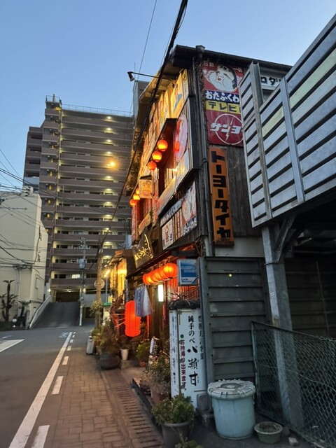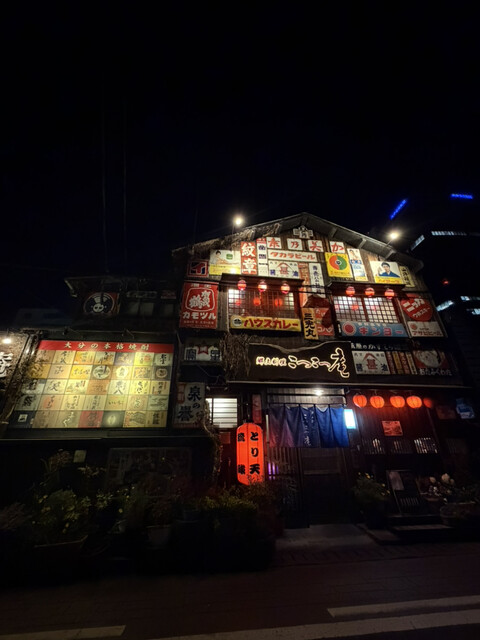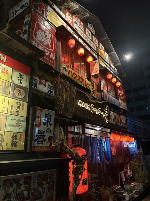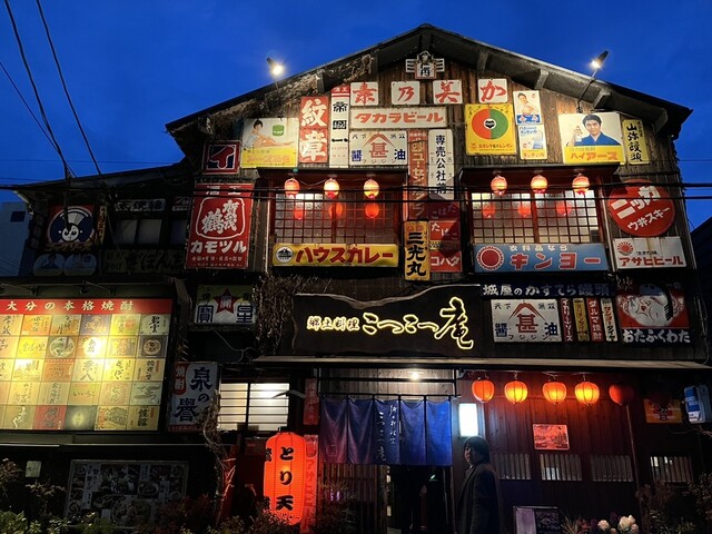 大分駅から歩いて10分強。大分県庁のすぐ近く、大分合同新聞の隣にあり、レトロな看板と提灯が並ぶ外観が目印です。