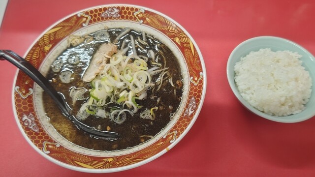 ラーメンは、白・黒・赤って選べました。母は以前白を食べたことがあるとのことでしたが、メニューにあった不動の1番人気というキャッチにひかれ、2人とも黒ラーメンに。ランチタイムサービスで、白ご飯と餃子のセットがあったので、ボクはそれをお願いしまし...