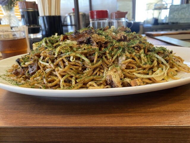 鉄板にて作られてる他のメニューより、目に見えて大きい。完成してお皿に盛られた時には、他のお客の視線が集まっていた。