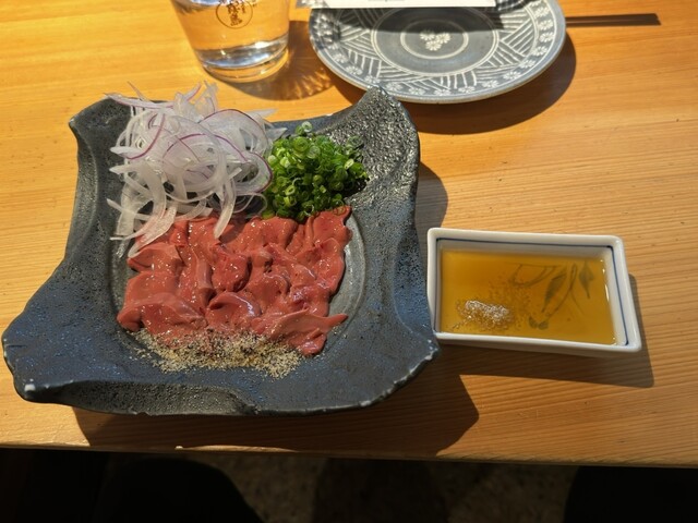 先ずは鹿児島焼酎、レバー刺し、タタキをオーダー