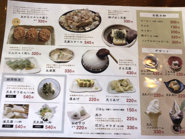他にも寄せ豆腐やら豆乳やら呉汁やらデザートまでほぼ豆腐のメニュ...