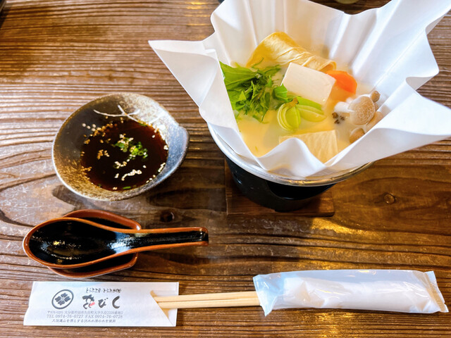 久住連山の沢水水源の湧水で作る豆腐を味わえる豆腐料理店です。