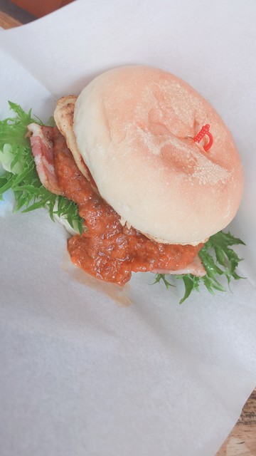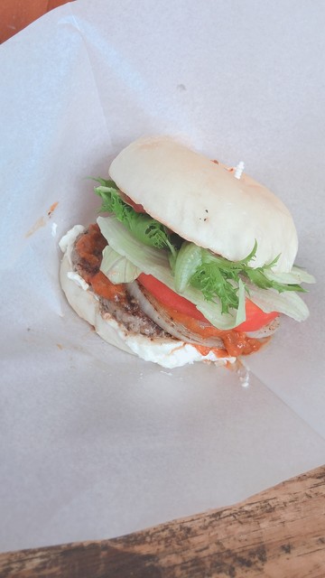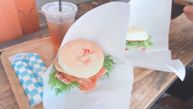 旅館で朝ごはんをたくさん食べてたので、お手軽なファストフードと思い、ユフインバーガーを頂きました。