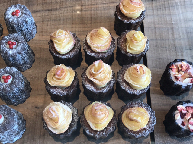 こじんまりした店内のショーケースにはカヌレが綺麗に並べられてます。