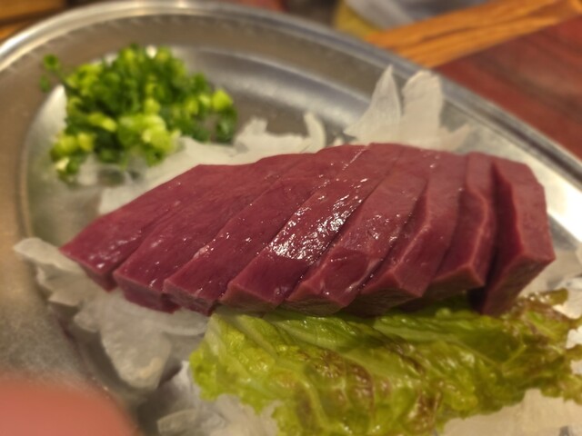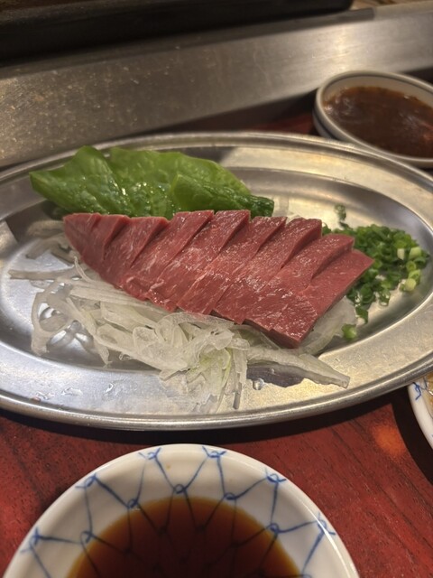 メニューは焼肉・ホルモン・刺身・野菜・キムチ・ご飯物等、定番を一通り取り揃える。