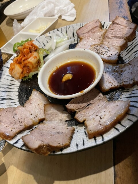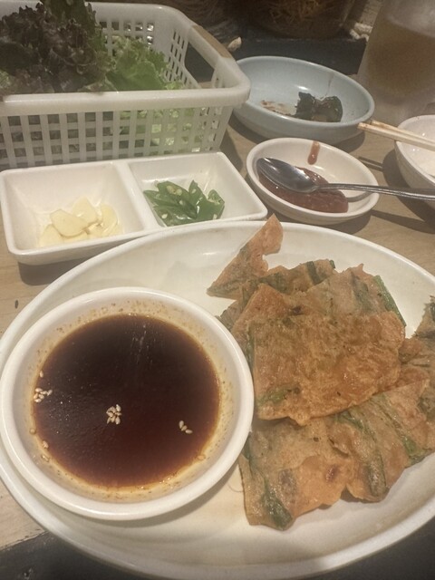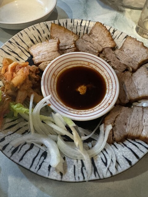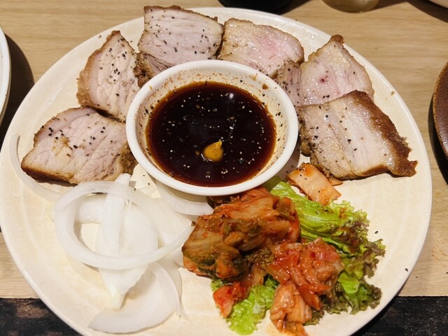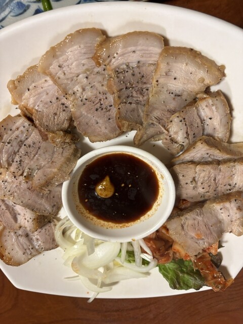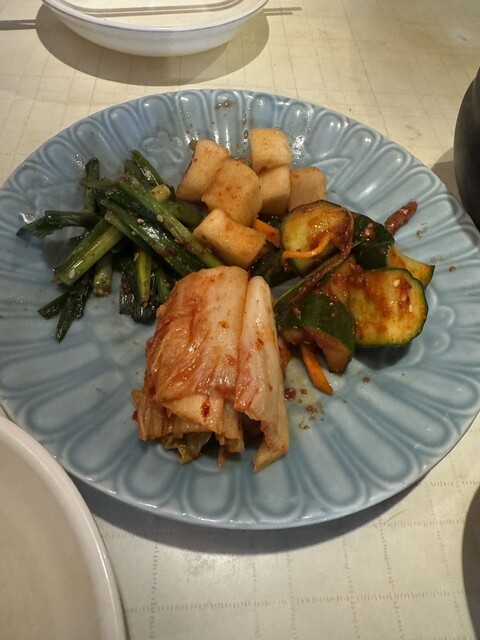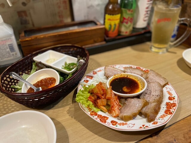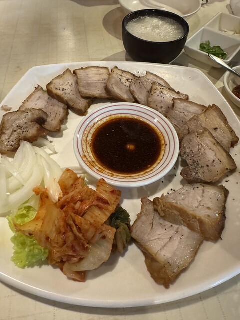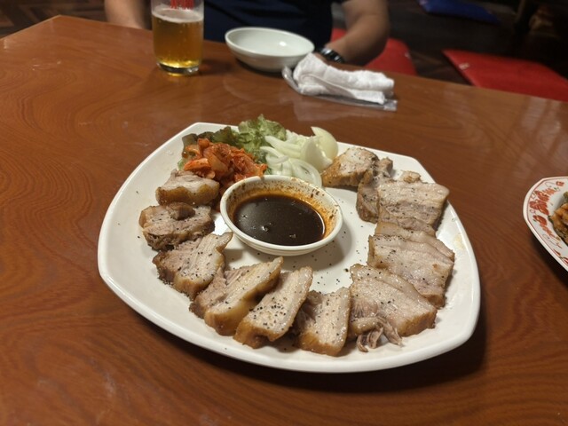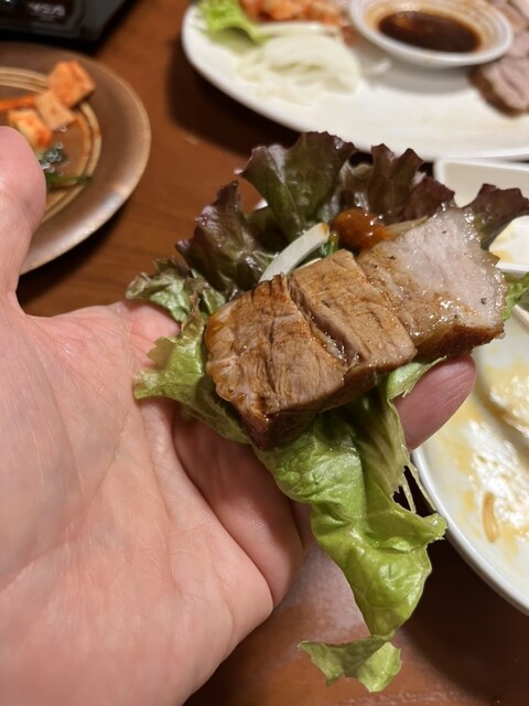 サンチュで巻いて食べる豚肉を茹でたもの(名前分からずすいません)や、サムギョプサルなど、おすすめを一通りいただきましたが、全部...