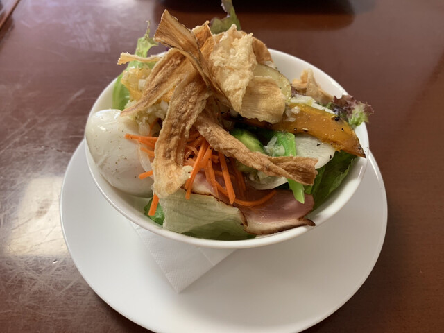 ササンボンのランチ。 やっぱサラダが楽しみ、むしろメインはサラダ。 本日のサラダは、ポーチドエッグとローストポークのサラダ。 ドレッシングのバジルソースにクルミが入ってま... 詳細を見る