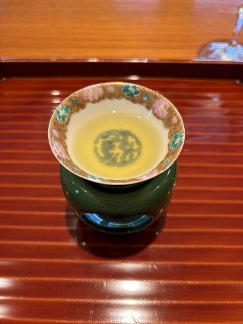 飲み物は、日本酒ペアリング(税込9,200円)を。同行者はノンアルコール6品セ...