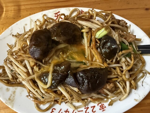 日田市のご当地グルメ日田やきそば。焼きそばがお美味しいと教えていただき、平日のお昼時に伺いました。もともとはラーメン屋なのでしょうか、オリジナルで椎茸焼きそばも出しているそうです。