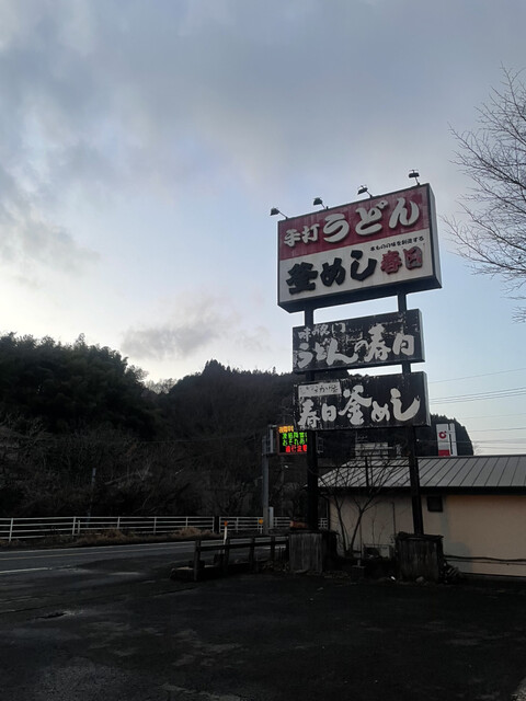玖珠、九重の国道沿いで取りすがりに見つけた春日うどん(通称)さん。 googleマップにも通称が書いてある。 昔ながらの田舎の観光地のドライブインという感じで、駐車場に車を停めて降りると、スピーカーから味のある演歌っぽい音楽が流れています。 手打うどん、釜めし、九重ポーク、豊後牛など外から見ても地元の郷土料理が頂ける感が溢れています。 ランチタイムは少し外れていますが、お客さん... 詳細を見る