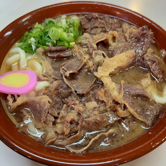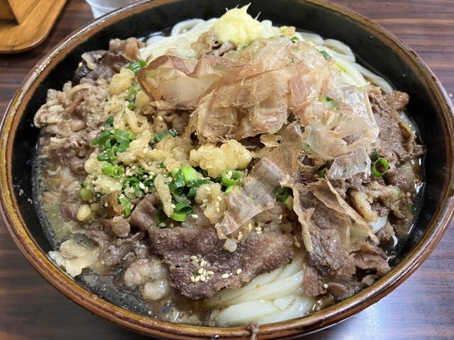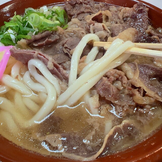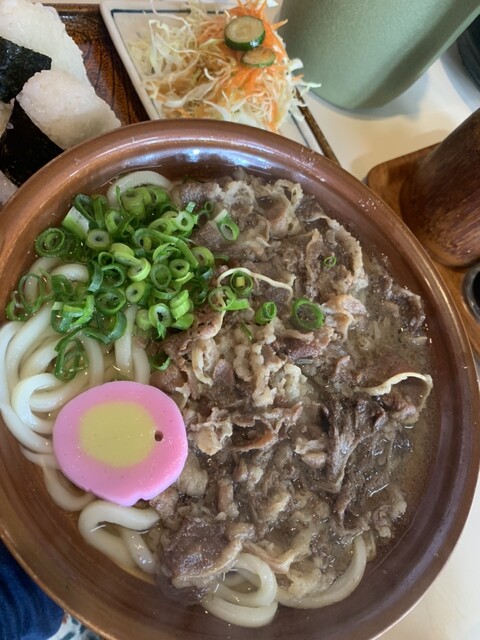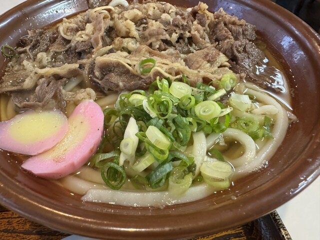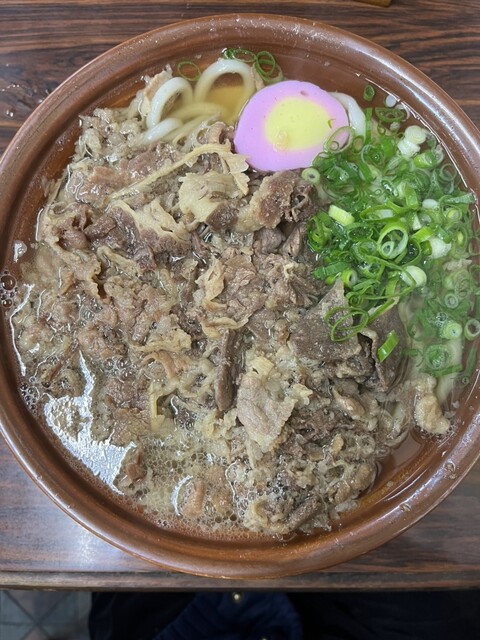 • 肉うどん(+生卵トッピング)