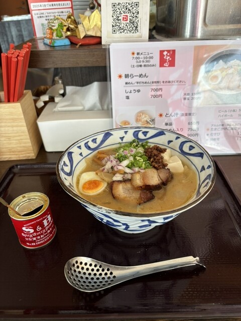 岡山に出張で来ておりまして、岡山駅前の『三方らーめん おお田』さんで朝ごはんを頂くことにしました(*´-`) らーめんは塩or醤油から選べるんですが、お値段驚きのワンコイン♡... 詳細を見る