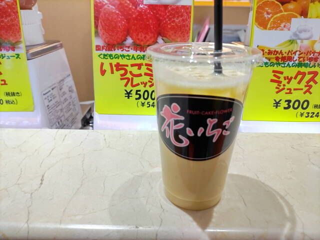 岡山駅構内にあるさんすて南館1階に店舗を構える「花いちご」にてミックスジュースを購入しました。