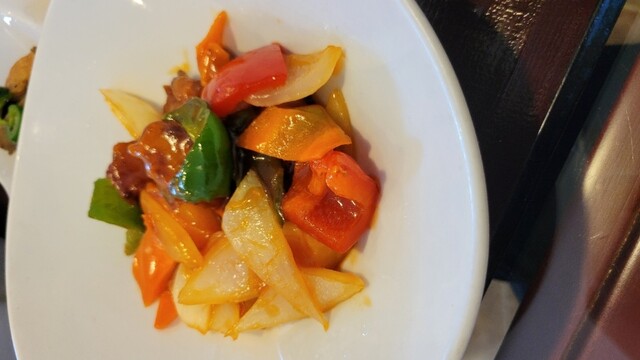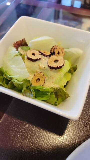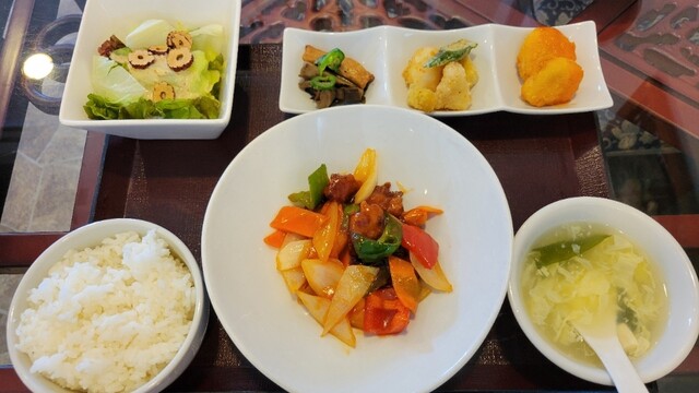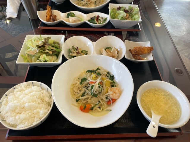 注文は「鶏肉とカシューナッツ赤唐辛子炒め定食」、待つこと10分少々で配膳、1000円以下の定食ですが小鉢・サラダ・卵スープと盛りだくさんの内容です...