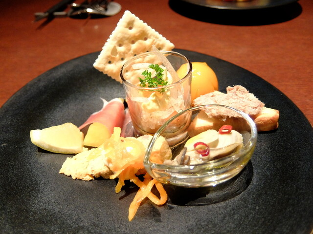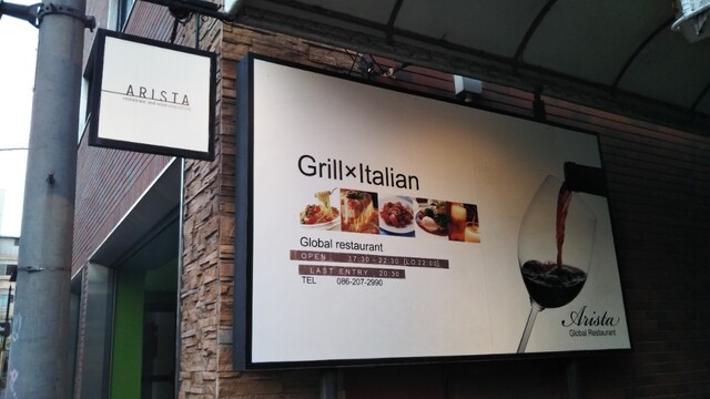 岡山旅行3日目。この日は朝から四国にいって金毘羅さん参りと讃岐うどん巡りをして夕方に岡山駅に戻ってきました。4軒うどん屋さんを周ったので、お腹はそこそこ一杯です。それでも岡山旅行最後の夜なので街に繰り出しました。土曜日の夜ということでピックアップしていたお店のうち2軒は満席と断られ、3軒めにお電話したのがコチラRestaurant & Wines ARISTAさんです。