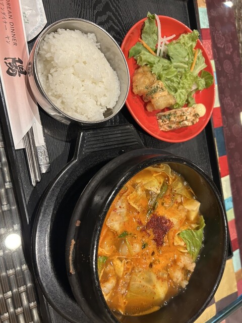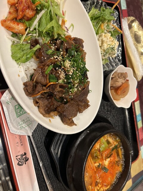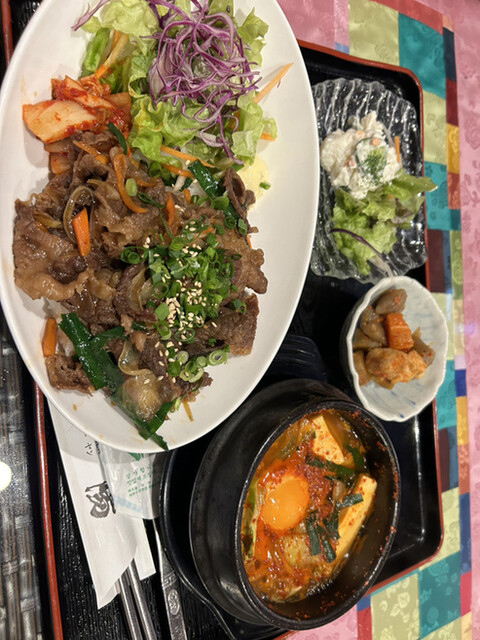平日のお昼ご飯 13時前に到着。 結構なお客さんで。 スンドゥブ、ラーメン、石焼ビビンバなどなどたくさん種類のあるランチメニューから頂いたのは、プルコギ定食。 お肉もカルビ... 詳細を見る