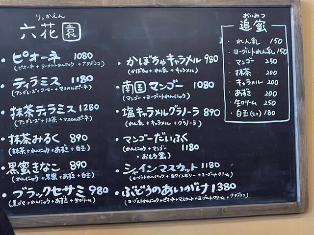 夏季はかき氷、冬季はパンケーキの専門店の六花園です。練乳はもちろん、全ての蜜を自家製で作っています。季節のフルーツや食材で専門店ならではのかき氷をお楽しみください。