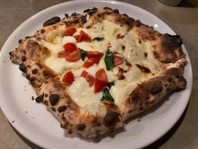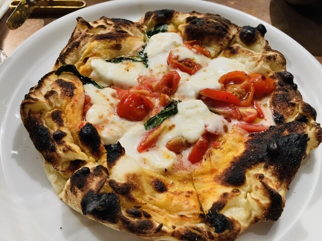水牛のストラッチャチーズが使用されておりチーズの旨味が強く、トマトのフレッシュさも良く、オイルもたっぷりで素晴らしいですが、何よりも100時間熟成しているという生地に感動しました!