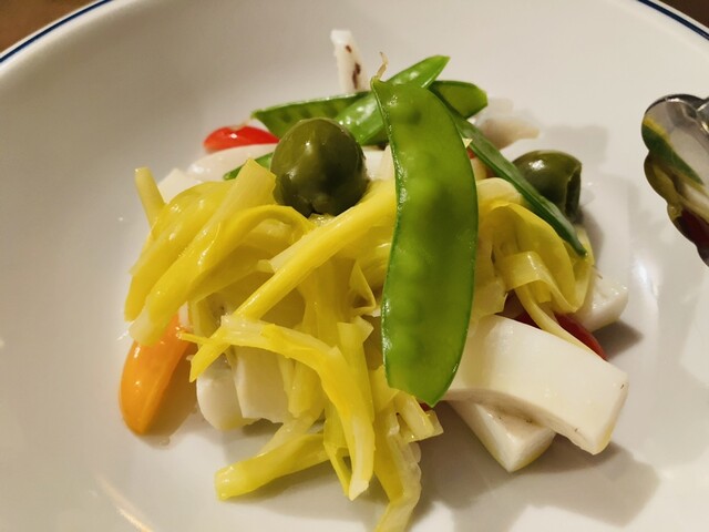 【写真②】ハリイカ 黄ニラ ライムとバージンオイルマリネ(税込1,500円/2人)