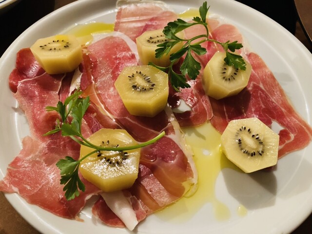 【写真③】スペイン産 生ハム、ゴールデンキウイ(税込1,500円/2人)