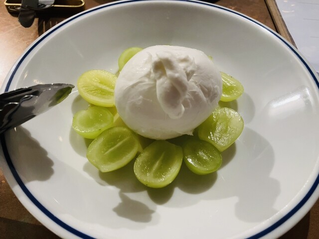 【写真①】イタリア直送便 水牛ブッラータ、シャインマスカット(税込1,700円/2人)
