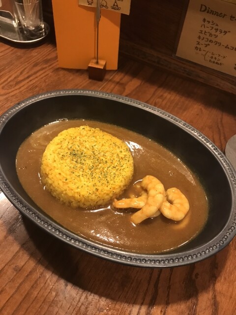 シーフードカレーはガラエビの出汁をベースに使ったエビの旨味が広がるカレーでエビ3個、