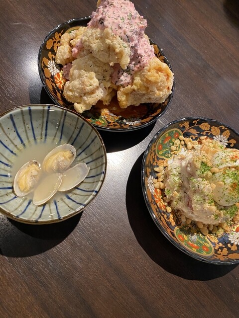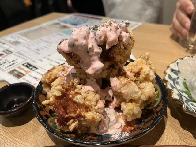 飲み放題が2200円でできるのが良い所。店員さんは若い方が多くて、元気な接客でした。 以下、食べた物です。 ▪️ぷりぷりエビマヨ 768円 ▪️牛串カツ 218円 ▪️エビ串カツ 218円 ▪️タルタルぶっかけ唐揚げ 768円 ▪️サーモンたくあんユッケ 713円 ▪️お通し 438円 ▪️飲み放題 2200円 ご馳走様でした。 詳細を見る
