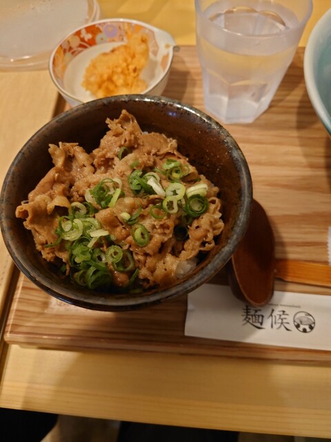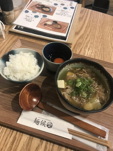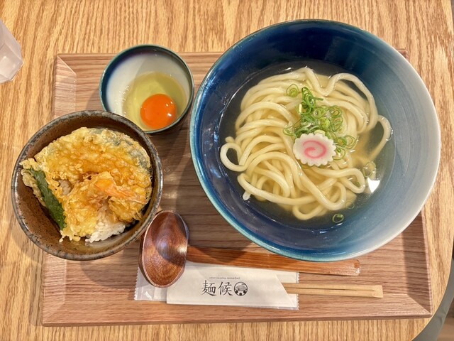 本日は岡山駅西口から徒歩圏内で奉還町商店街入り口近くのうどん屋さんを訪問しました。本日は会議後車でお昼時間に訪問しました。既に店舗外で4組待ちでした。10分ほどで入店して、麺候セット(梅)かけ並+ミニ天丼(990円)+生たまご(160円)、後輩は肉うどん並(990円)を注文しました。5分ほどで提供されました。個人的感想ですが、麺候セットのかけは出汁は昆布でイリコの風味はあまり感じません。カツオ風味...