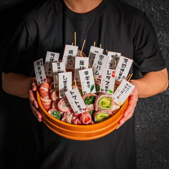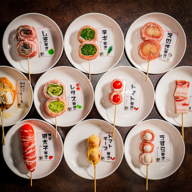 野菜巻きの串が名物とのことで、レタス巻き、トマト巻き、しそ巻きなどを注文。