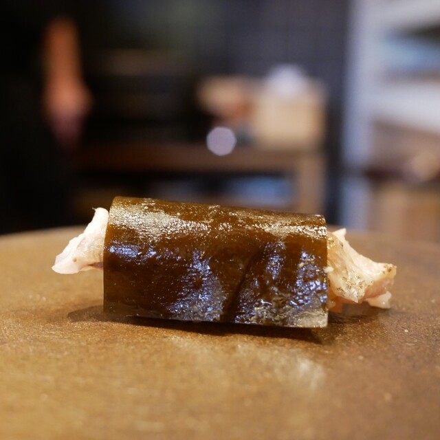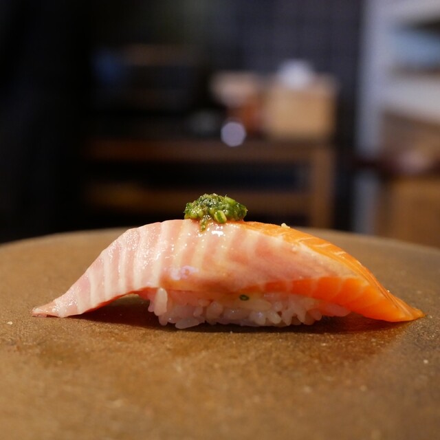 店主はイタリアンのバックグラウンドを持ち、鮨を軸にしながらも、構成や組み合わせにイノベーティブな要素を取り入れるスタイル。この日は、つまみ3品、握り15貫という構成だった。