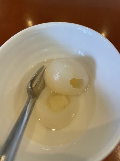 トムヤムクンの4辛を注文しました。デザートはランブータン。飲み物はジャスミン茶。辛さはほどよく美味しいからさ。コブミカンの葉や、レモングランがたっぷり入っていて爽やかな味付け。個人的に少し酸っぱ過ぎと感じました。