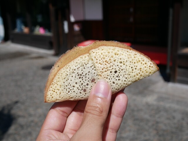 だんごを薄く伸ばして焼き上げたような、香ばしくモチモチした食感がたまりません。