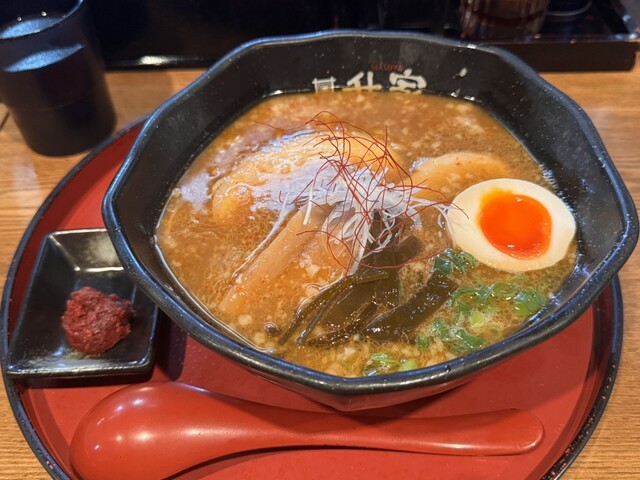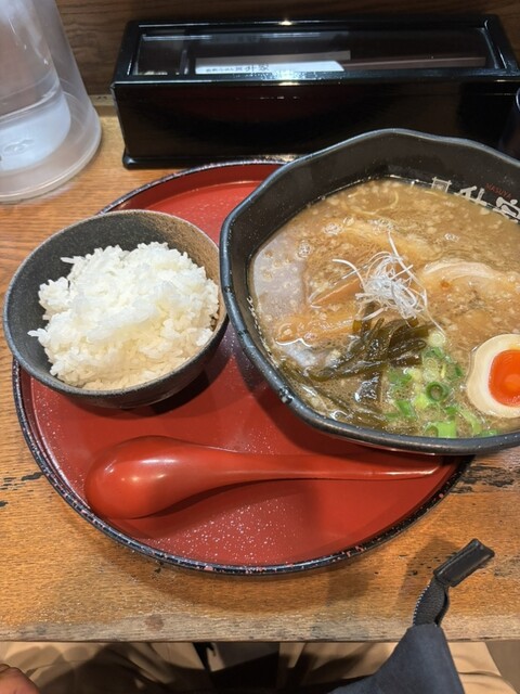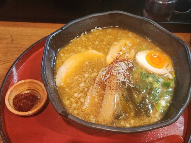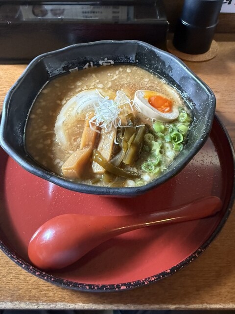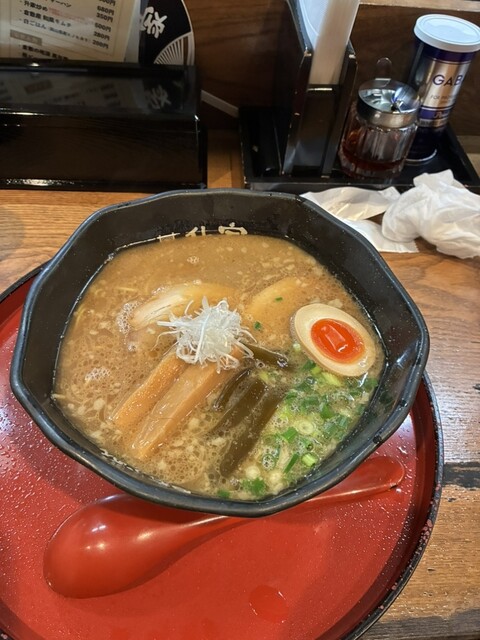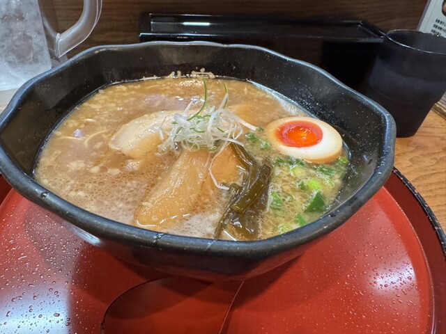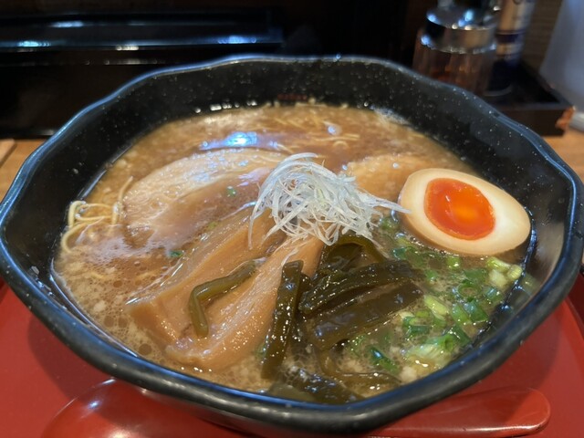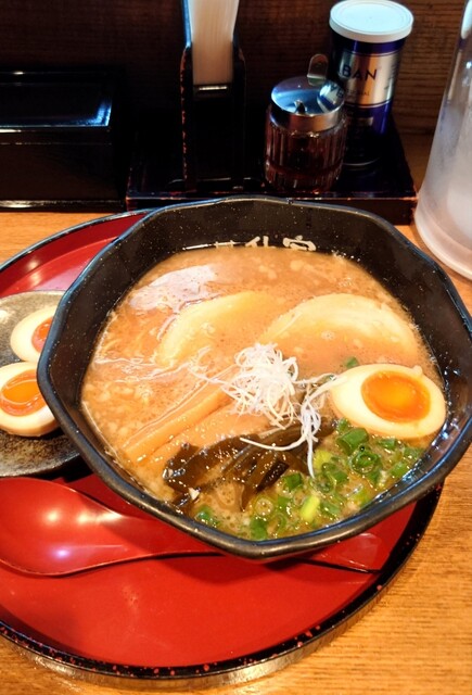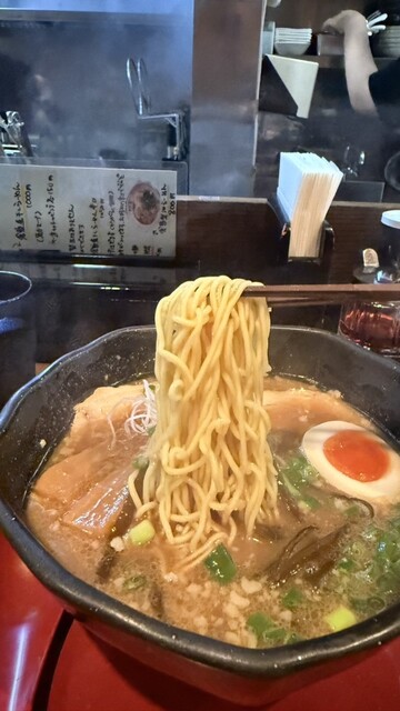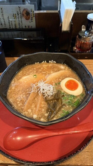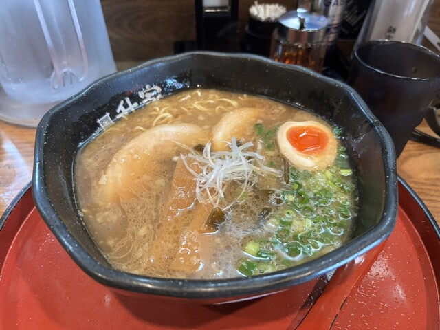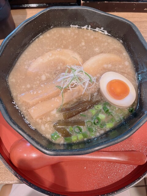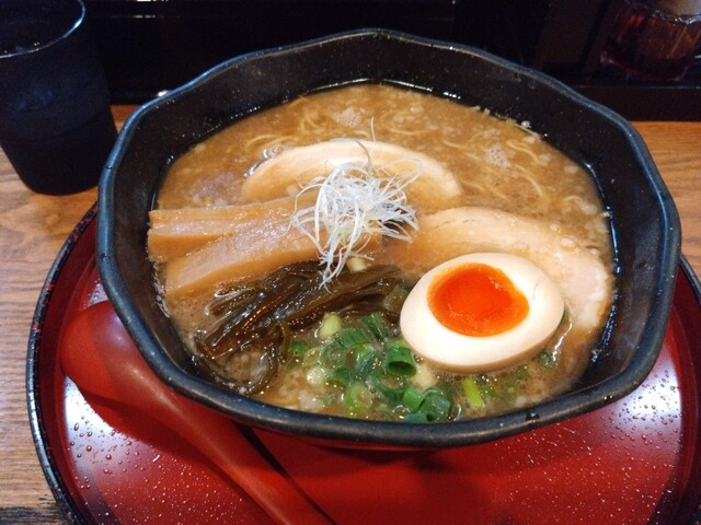 煮干しラーメンは豚骨ラーメンに煮干しが合わさって初めての味わいながら意外にとても合う!と...