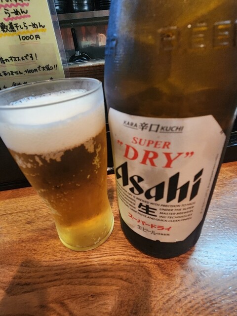 選んだのは倉敷煮干しラーメンと倉敷ぎょうざそして、瓶ビールです。