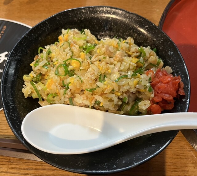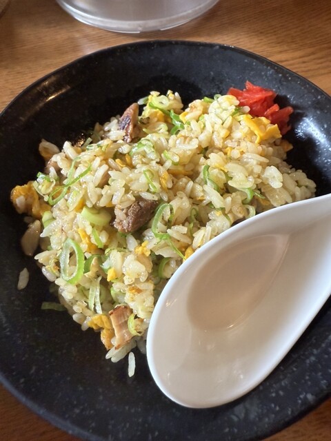 細かく砕かれたチャーシューが入っており、麺と絡むように工夫がされています。