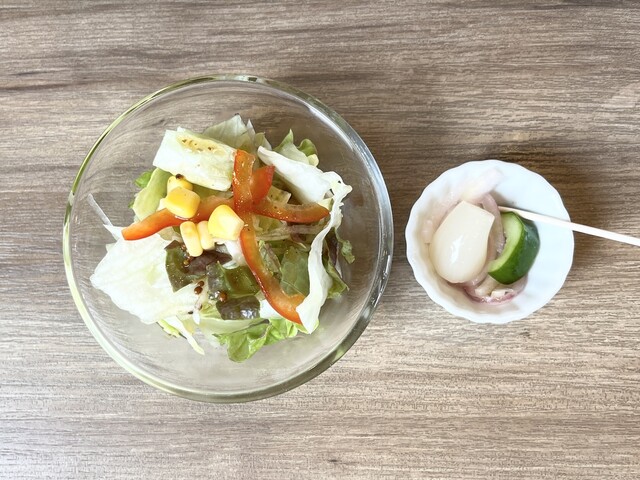 先にサラダとピクルスが来て、しばらく後にカレーが出てきます。
