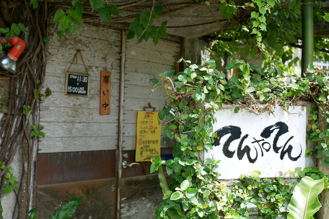 人と人とを結ぶ、そんな出会いを大切にする気持ちを込めてつけられた「てんtoてん」は、那覇市識名にあるおそば屋さん。店内はアートギャラリーのような落ち着いた雰囲気が漂う。ごはんメニューは、木灰すばと古代米おにぎりのみ。古代米は、西表島産を使用。農薬は一切使わず、放したアイガモに雑草を食べてもらう昔ながらの農法で作られている。店頭では、古代米の販売も行っており、それだけを購入しに来る人もいる。