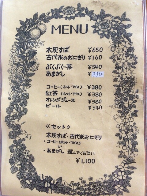 さて、木灰すばを注文して、シャレオツ水をすすりながら待つことしばし。