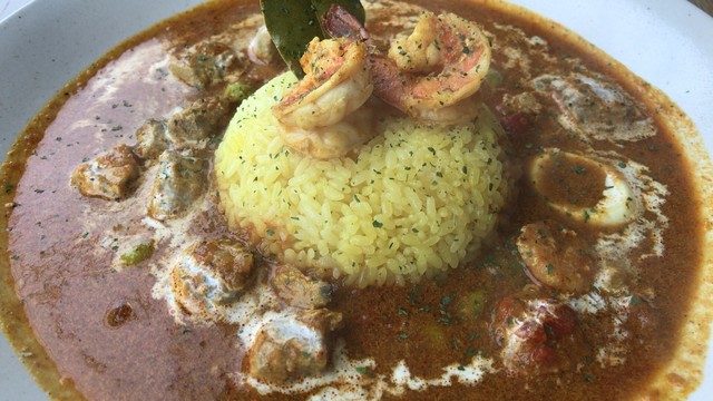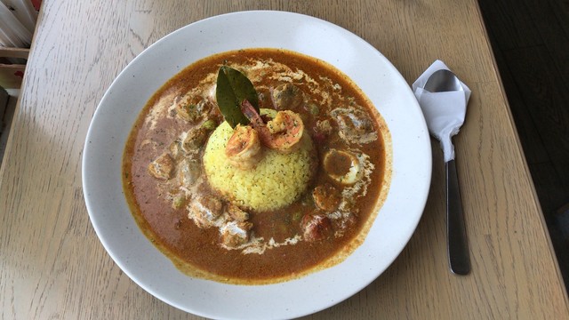しばし待って、海人カレー登場。ぅんぅん海人の名に恥じずシーフードがゴロゴロといっぱい入っています。お味は、酸味とココナッツとスパイスが程よく聞いて美味しいカレー。カレーとは別に焼かれたエビがこれまた美味しい。値段はすこしお高いですが、よくできたカレーでした。