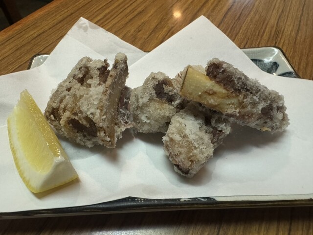 座ってメニューを軽く一読。まずは生ビールと鶏軟骨唐揚げを注...