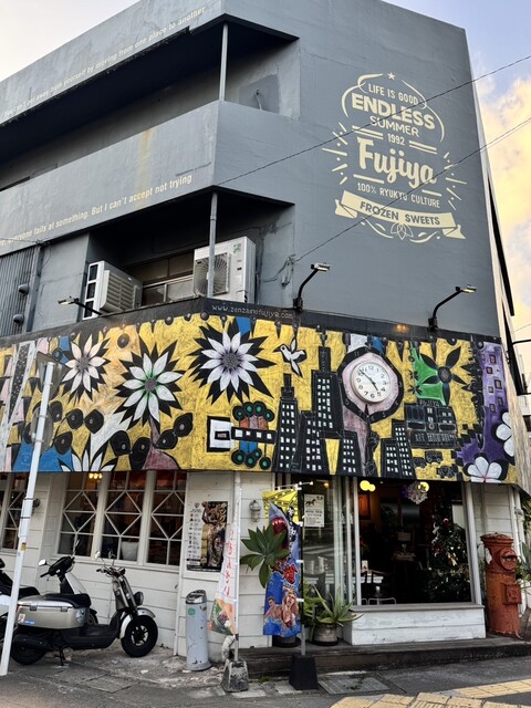 昼はサラリーマン、昼過ぎは主婦、夕方からは学生と、幅広い世代が訪れる「富士家」泊店は、“おいしいこと”と“楽しいこと”にこだわる専門店。かき氷と金時豆、付け合わせの亀せんべいのセットで差し出される「富士家ぜんざい」は、豆の煮汁を凍らせたかき氷を使用。甘みが染みたかき氷と圧力鍋でじっくり煮た金時豆の調和が見事。ツヤツヤして形がととのった金時豆は、豆そのものの甘みを残し、口の中でホロホロとほぐれる。
