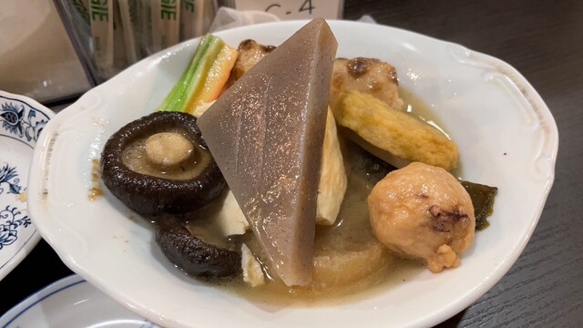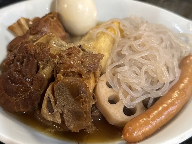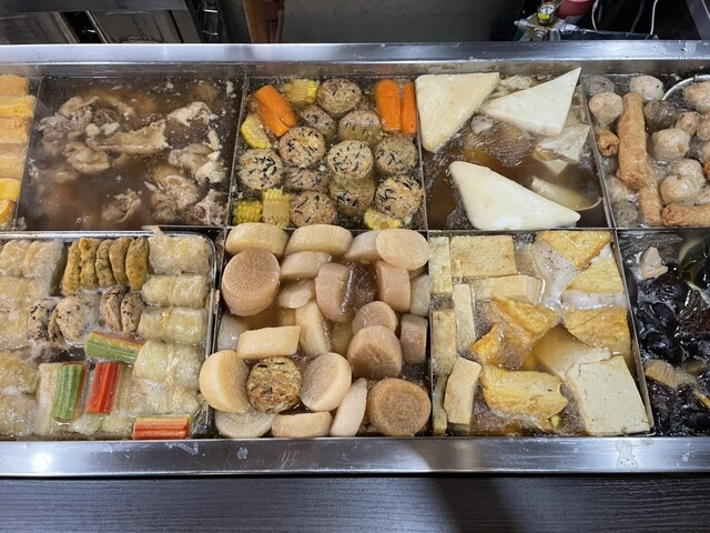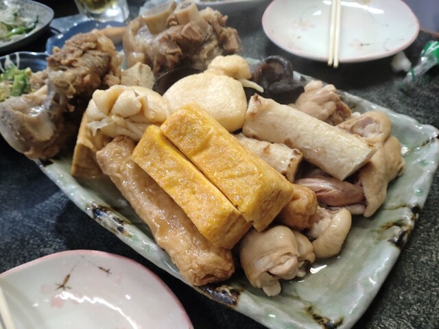 多くのお客様に長く愛されてきたおでん店を、「やっぱりステーキ」を展開する会社が事業継承。48年間継ぎ足ししてきた出汁やお値打ち価格をそのまま受け継ぎ、現在も多くのお客様にご愛顧いただいております。おススメは「豚足」のおでん。ゼラチンたっぷりのチマグ(足先)、別鍋で甘辛く煮たテビチ(スネ)の両方をお楽しみいただけます。県庁前駅5分とアクセス便利な当店で、ゆったりと老舗の味をご堪能ください。